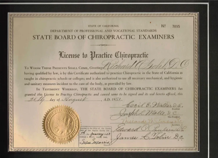 Dr. Gohl enrolled in the Palmer School of Chiropractic in 1947, following his two years of service in Okinawa with the Navy Seabees. After graduation, he worked as an intern in the Davenport Palmer Chiropractic Clinic. From there, he moved to Glendale, California, where he began his practice. The doors to his practice have been open since the early 50’s, and patients have continued to be cared for by Dr. Gohl using the Gonstead technique.